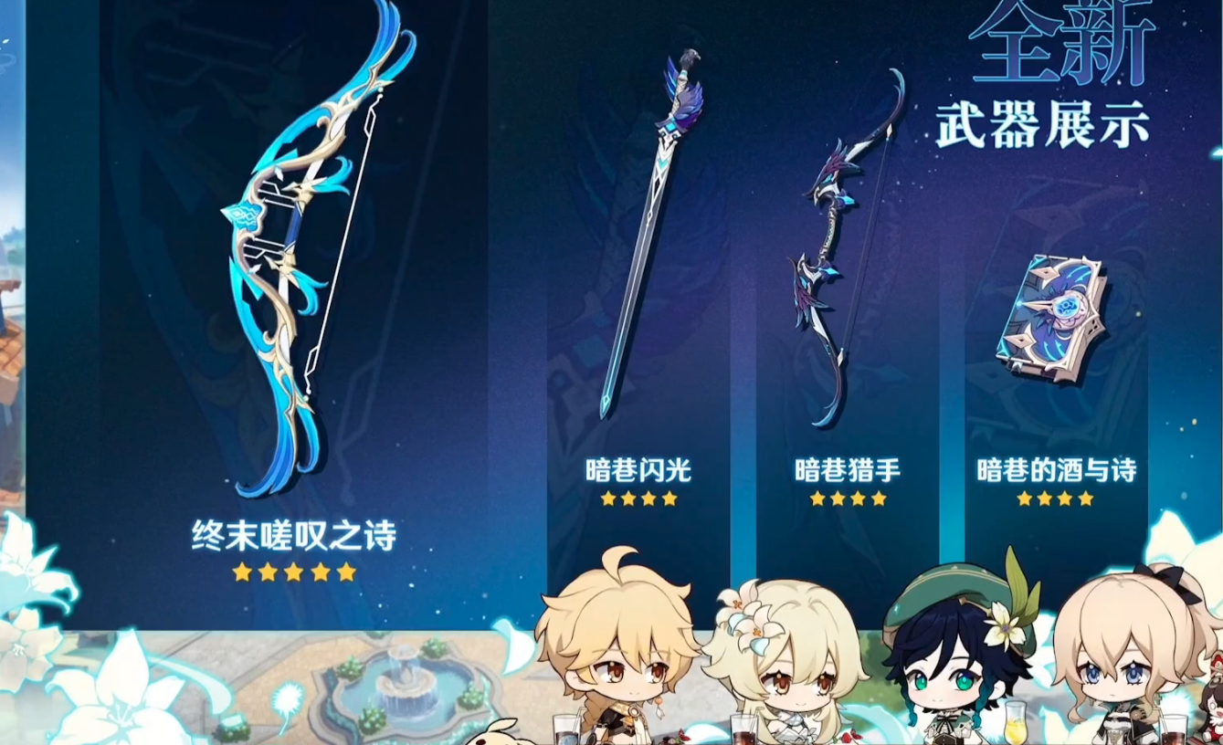 小编可以告诉大家的是,温迪伴随的武器是是新的五星弓,终末嗟叹之诗。这把弓十分建议辅助温迪抽取。然后我们的罗莎利亚将会在公子的卡池中出现,是一个强力的冰辅助角色,建议抽取。