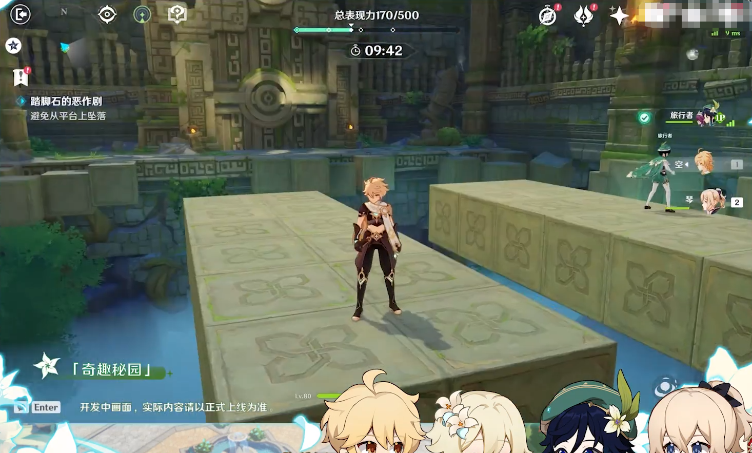 首先是活动的地点,在蒙德城门口传送点点击左上角便可以找到。奇趣秘园一共有五中游戏,第一种游戏与大家平时玩的跑酷类游戏比较类似。玩家需要做的便是通过操控手中的游戏角色不断向前奔跑,并在奔跑的同时躲避掉路上的泡泡障碍。