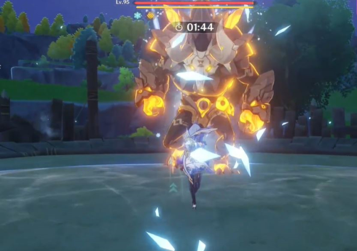 综合上述考虑,处于非魔化状态下的丘丘岩盔王更容易对付。所以角色要快速打破怪物的铠甲,尽可能减少铠甲存在时间。针对这一点,建议角色搭配为诺艾尔、行秋、胡桃。