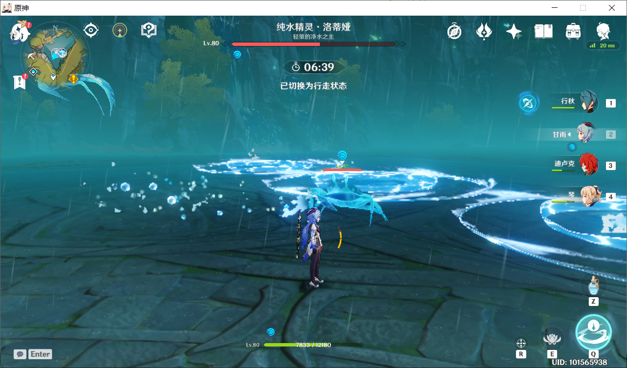 然后这个活动关卡的boss还是纯水精灵,只是现在普通攻击可以攻击到纯水精灵,技能也有了相应的变化。不再是一直召唤小兵来攻打我们,我们需要用技能打中纯水精灵的本体才会导致其扣血。下面是其中的技能之一,一次性三个圈,范围伤害。