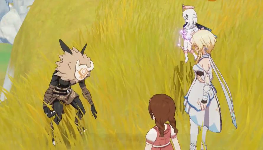 成功击败两波怪物,玩家要返回到第二个丘丘人那里回复。回复后,玩家可以领到奖励。