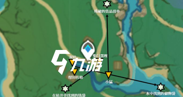 玩家们需要在地图上找到锚点把自己传送到稻妻的位置,然后来到绀田村上方,在附近就会看到天狐像了,直接上前跟其进行对话。结束对话之后就去村子里边跟当地人进行打听,最开始是找到村长绀田传助,接着就是去找双叶,从两个人那里会得到想要的线索之后,要去找小猛跟柴门慧理,二人会提供线索跟相关的位置。玩家们根据提示进行定位搜索就能找到残破的货品清单、在枯井旁找到的钱袋跟水中找到的货物袋。拿好这些东西之后就回到刚才遇到村长的地方,把东西交给村长,然后就爬到村长的房顶上寻找村长留下来的笔记。
