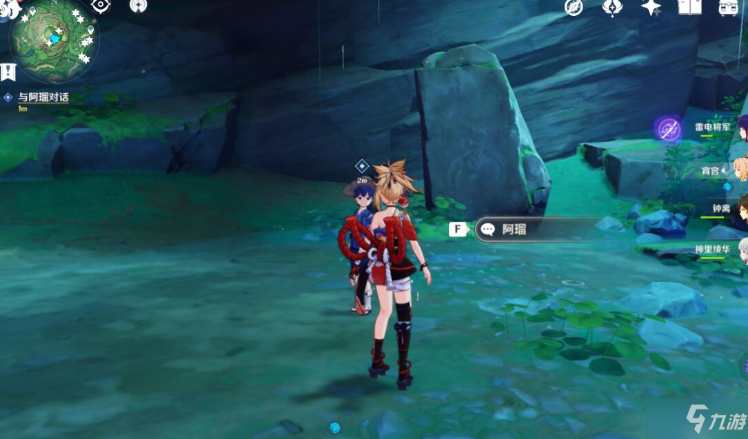来到清簌岛,剧情动画结束后,返回菅名山调查祭坛,动画结束后和阿瑠对话。