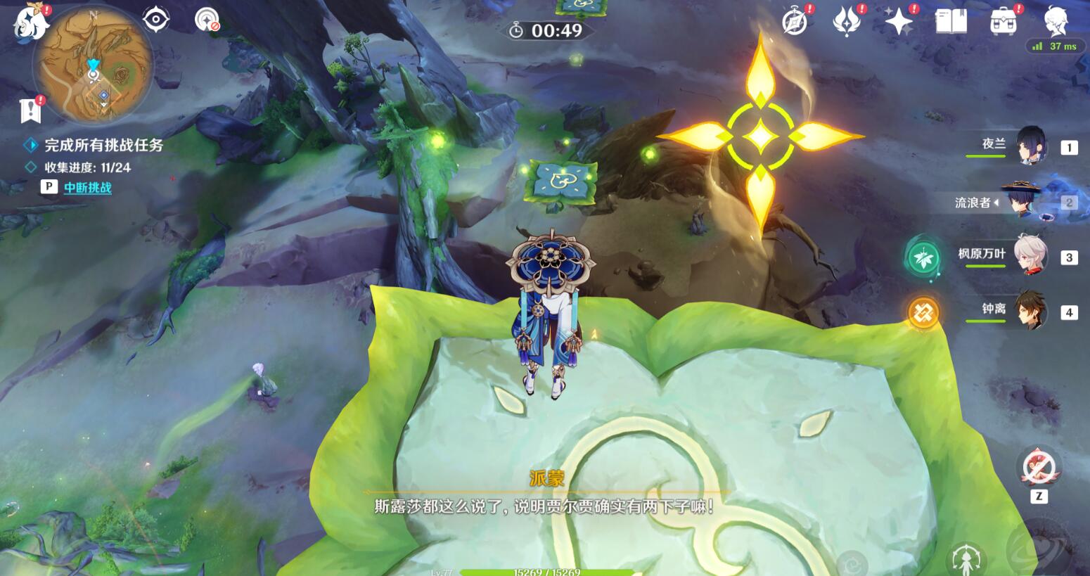 找贾尔贾的路线:来到下图的位置,完成限时挑战就能上去了。如果已经完成了这里会有四叶印留着,在锚点那里直接飞