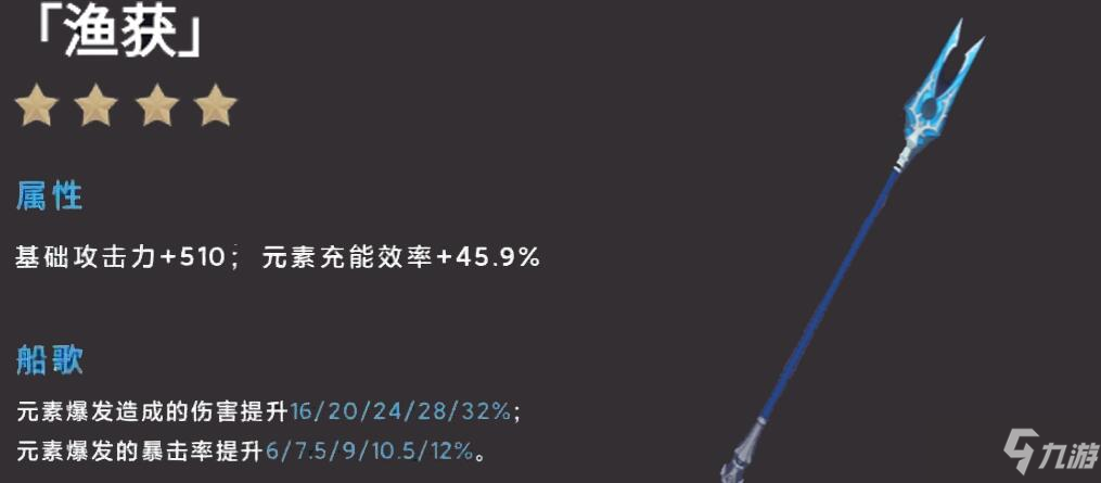 原神2.1版本中将要上线的渔获是一把四星的长柄武器,这把武器的属性还是十分不错的,不少玩家们都比较想知道这把武器能够和哪些角色比较契合吧,那...[详情]