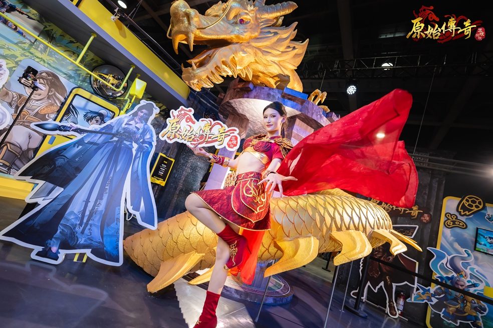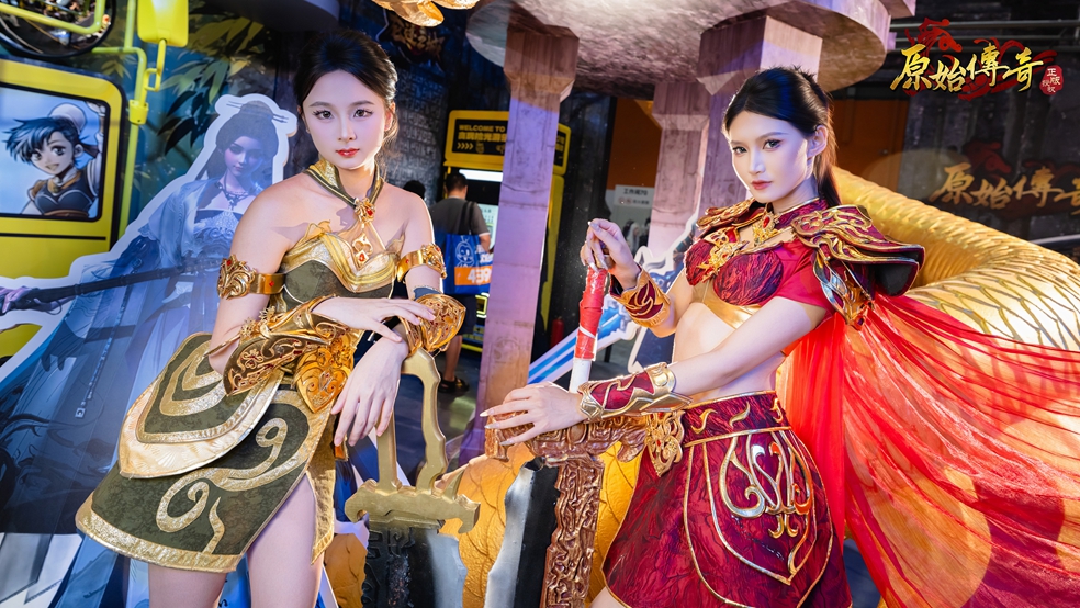 展会现场,原始传奇主题展区吸引了无数目光。高颜值美女COSER化身传奇女战士手持金光闪闪的屠龙宝刀,瞬间将玩家们带回到那个热血沸腾的玛法大陆。