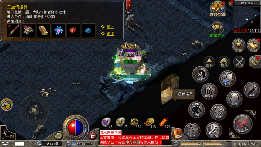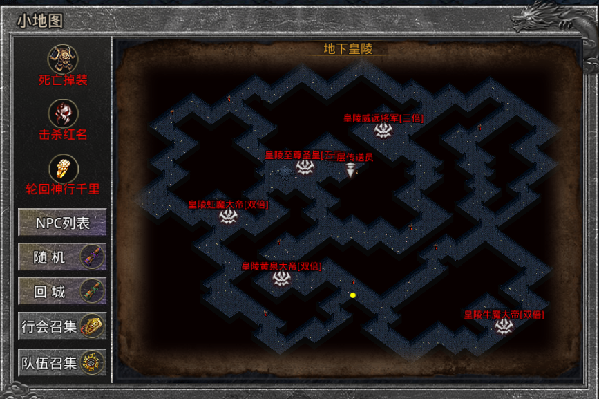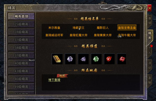 皇陵至尊圣皇:该首领属于一层地图内强度最高的首领,伤害、防御、血量都比较高,前期建议组队一起打,最高能产出5转传奇传奇装备。
