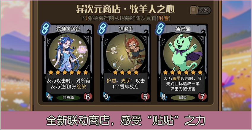 全新「异次元商店·牧羊人之心」上线,商店内随从自带【附着】属性,叠加英雄技能触发额外效果;