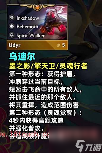 云顶之弈s11乌迪尔带什么装备?s11赛季的五费卡乌迪尔羁绊是墨影之灵,兽灵行者,巨人。这个弈子的技能控制效果强伤害也很高,下面为大家介绍五费卡乌迪尔的技能效果以及装备选择建议。