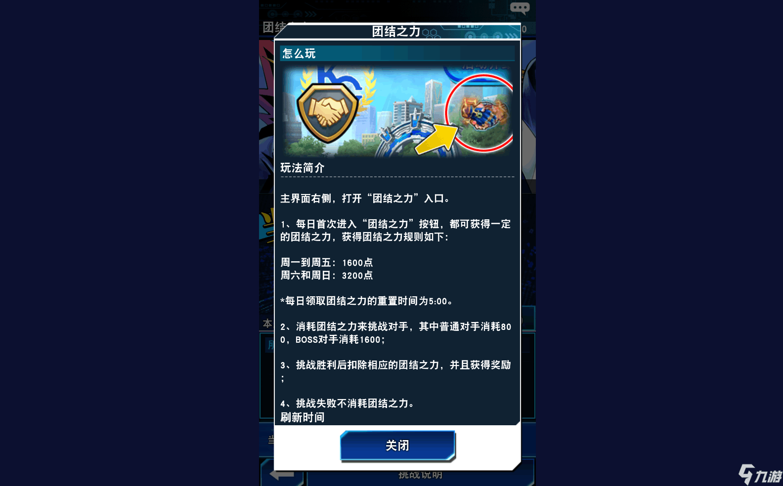 团结之力活动的主要玩法就是获得团结之力的点数然后去击败对手,击败对手后会获得相应的奖励,而被对手打败后则不会损失对应的点数,当然我们也拿不到奖励。