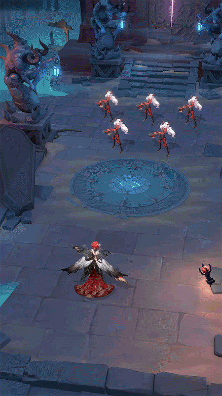 一技能特效展示:锁链缠住敌人的瞬间,会以其为中心绽开一圈环形的山水画障,仿佛将敌人封印在一幅立体的水墨画卷之中。