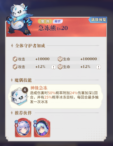 2、稀世魔偶「急冻熊」上线
