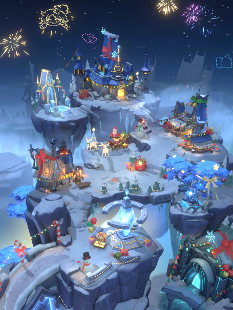 新增主城圣诞主题装扮,可通过右上角角色头像进入设置界面更换主城皮肤。