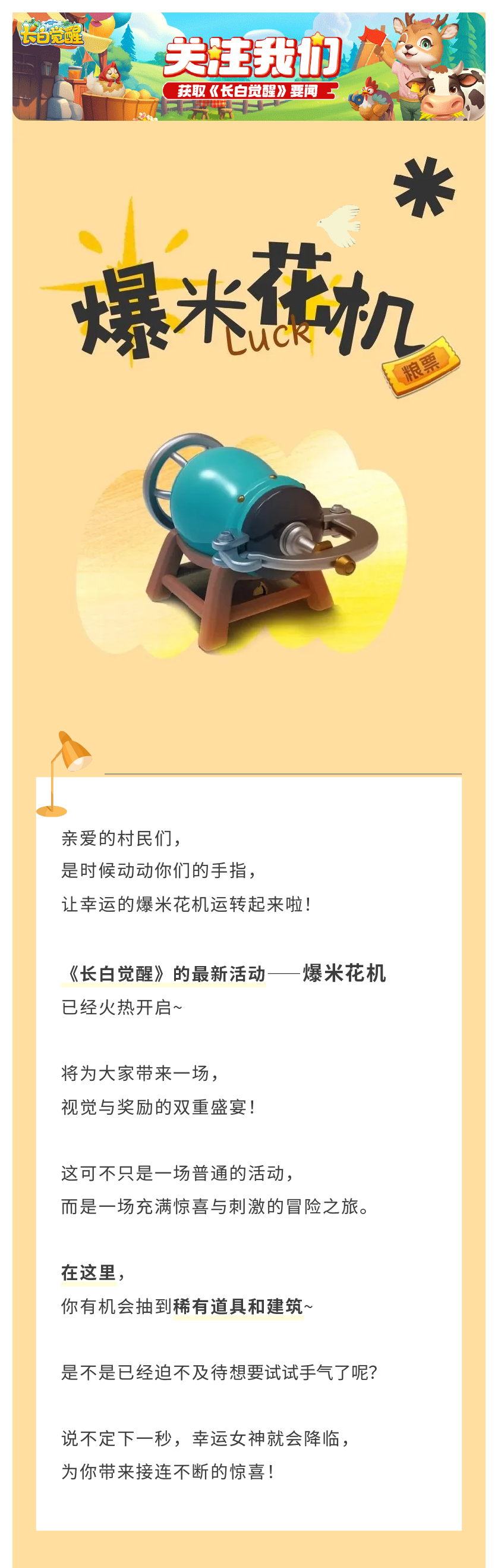 长白觉醒丨爆米花机:转动幸运 赢取丰厚奖励!