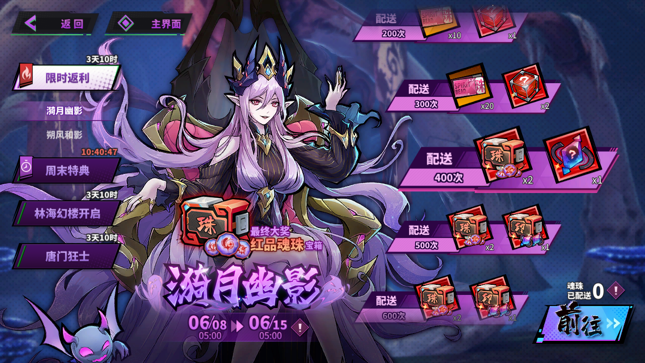 活动期间,在魂珠配送卡池消耗配送道具,配送次数直接加入活动次数,完成配送任务即可领取奖励。
