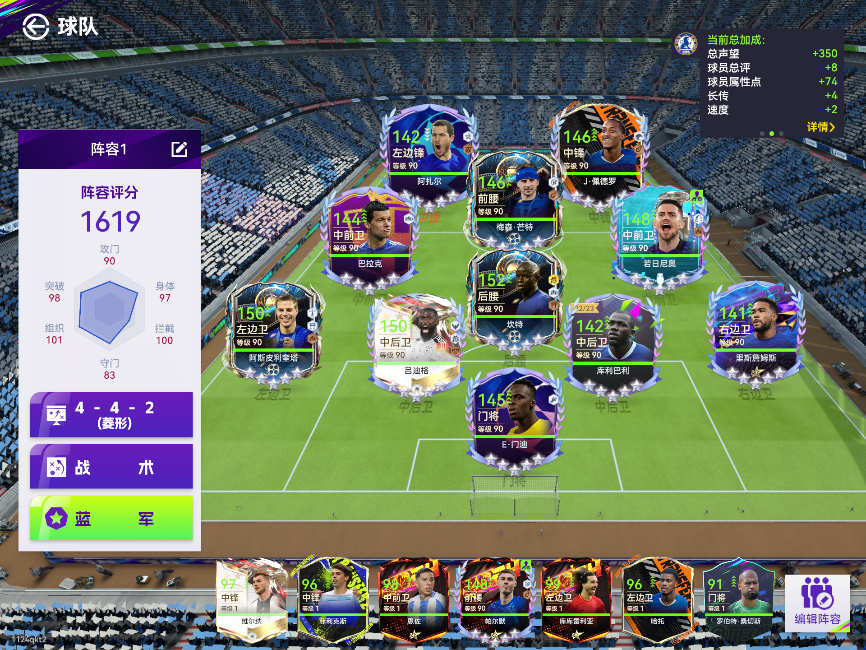 可以看到,随着经典时刻球员的上线,阵容中最大的变化便是加入了:经典时刻格列兹曼、经典时刻琼阿梅尼、经典时刻坎特,接下来,我将一一分析这三名球员的特点以及阵容战术。