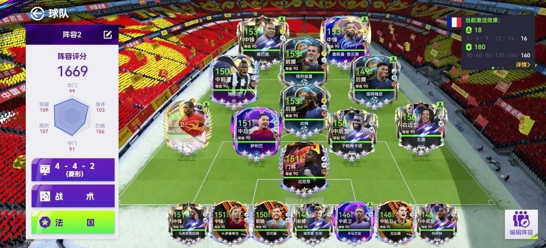 经典时刻主题球员上线后,我认为最强法国队套的阵容也有所改变,各位主帅可以适当参考。