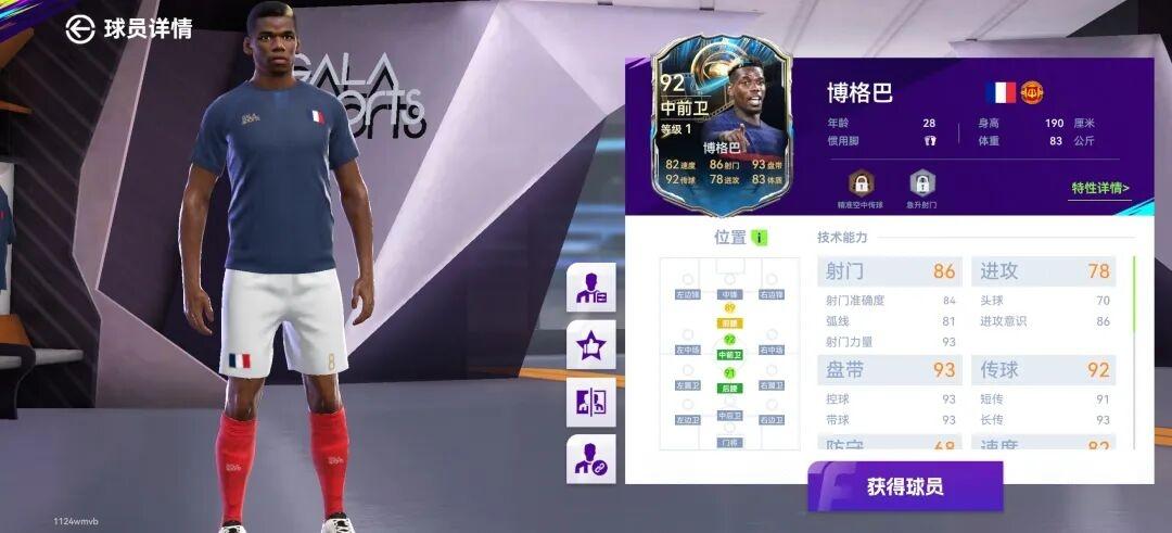 如上所说,中场是法国相对薄弱的位置,而这张博格巴也是法国毕业中场的选择之一,对比之前最强的金童博格巴也只是防守稍差,数值甚至不输本体升星92荣耀博格巴,并且还给了93金童以及92荣耀都没有的前腰注册位,虽然是黄色但有总比没有好,偶尔客串一下也是没有任何问题的,所以性价比非常之高。