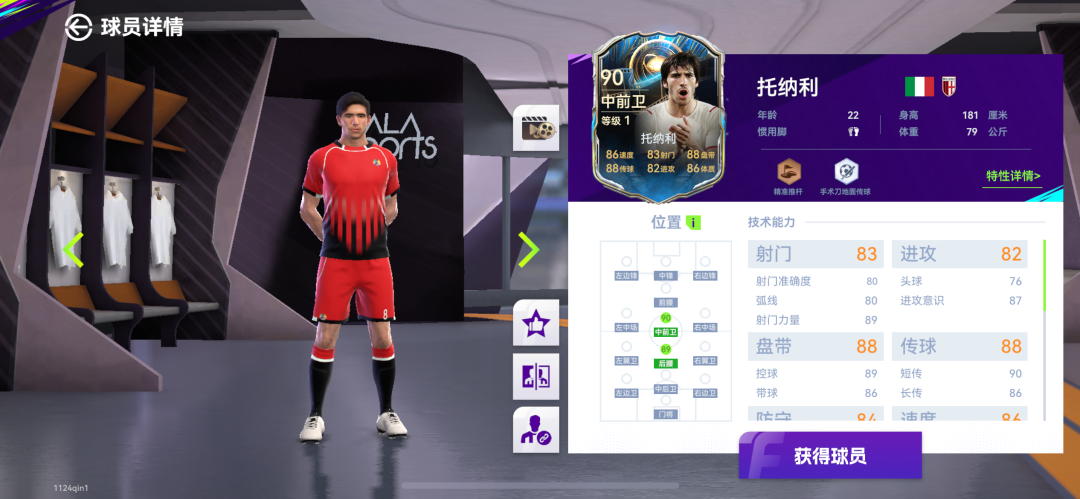经典时刻托纳利是极具性价比的一名攻防一体的球员,数据非常的均衡,身高模型优秀,防守进攻端数据一流,也比较好培养。技能:手术刀地面传球——T0传球技能可以在比赛当中发挥出亮眼的表现,同时也是打外援的最佳选择之一。