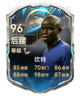 没有过不去的坎 只有过不去的坎特。新上线的经典时刻96坎特在后腰的位置上无疑是T0级别的存在,拥有极其出色的数据,【预判抢断】【铁人】的特性组合,让坎特能持续积极地去防守、拦截对方的进攻球员,精准的抢断以及持续的压迫能为球队的攻防端带来极大的提升,经典时刻坎特绝对是后腰位置上的领军人物之一。