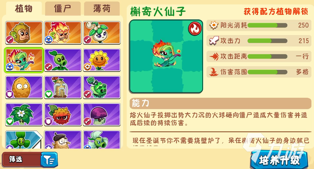 它的能力是挥舞火焰金箍棒,随后将其投向僵尸对一行敌人造成大量的伤害。