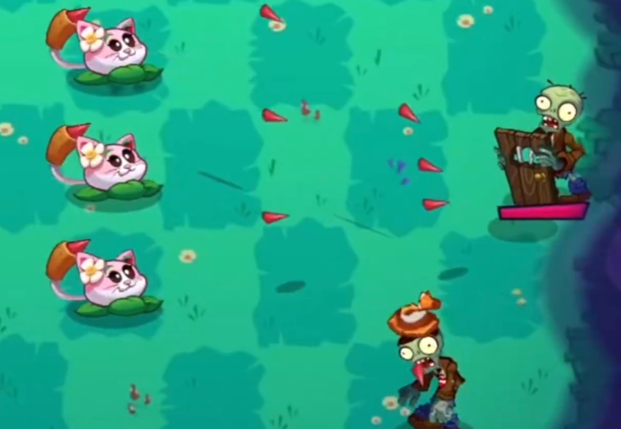 猫尾草的特性是不需要莲叶,就可以直接种植在水中,它的攻击会发射出一颗全屏追踪的针刺,针刺会自动锁定敌人,可以攻击位于空中的单位能无视高低差,这个针刺会优先帮助攻击僵尸,场上没有僵尸的时候才会攻击障碍物。